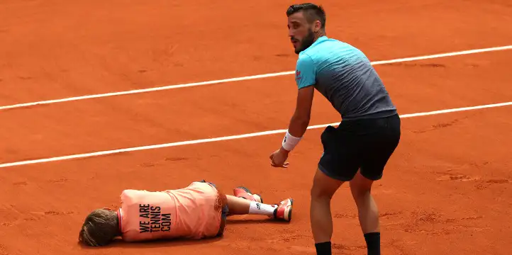 Damir Dzumhur and one of the ball kids had an uncomfortable moment as they collided.
