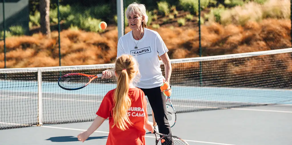 As these photos from Judy’s tennis lessons at The Campus highlight, the techniques she used to help her sons on their way to tennis superstardom are so much more than simply working on forehands and backhands.