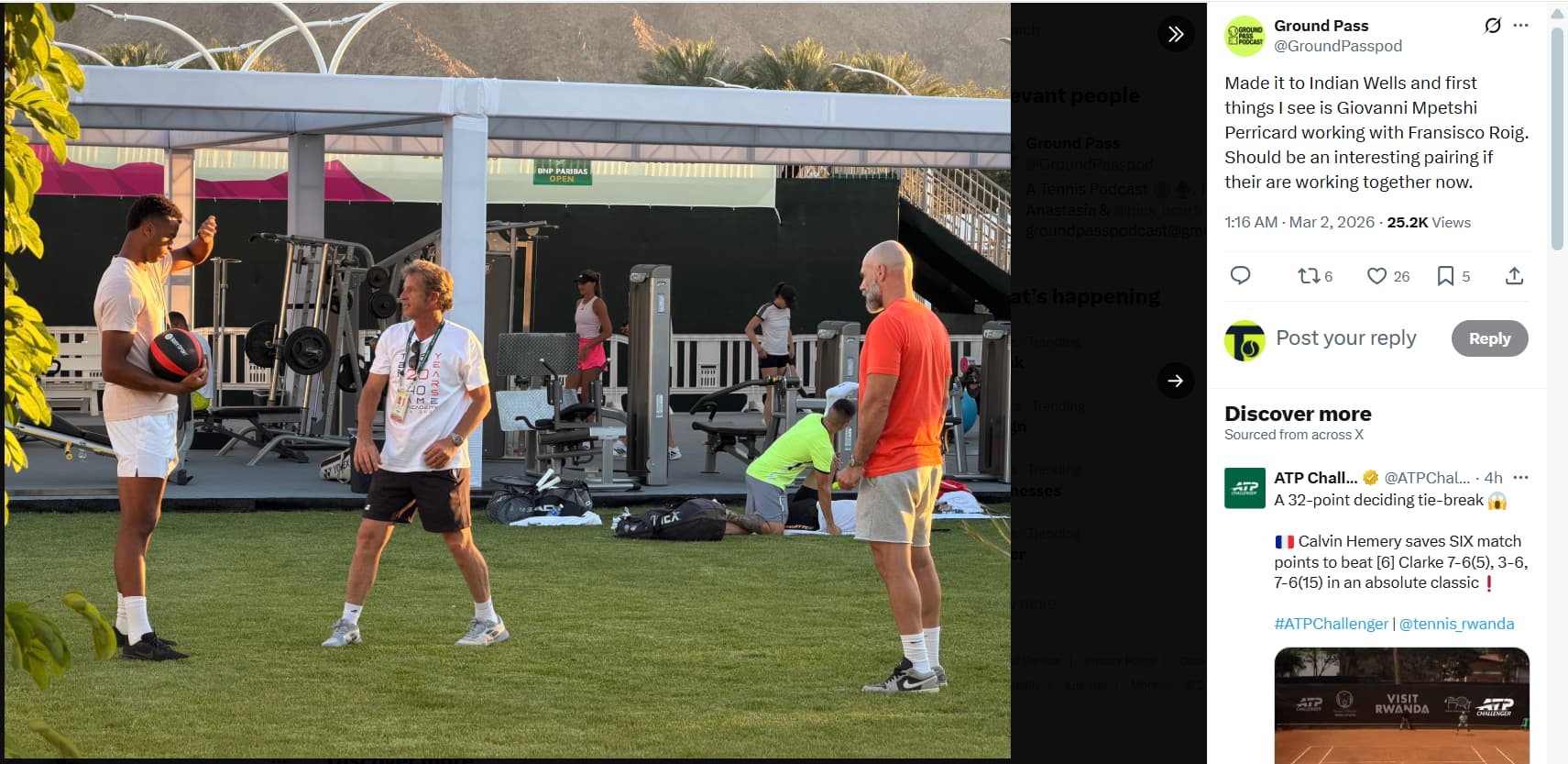 Pictures shared by Ground Pass on social media show Roig working with ATP Tour player Giovanni Mpetshi Perricard, the current world No 54.