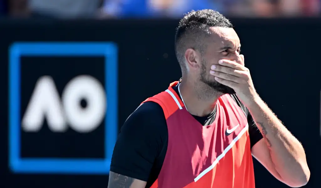A young tennis fan got a lot more than he bargained for at Australian Open as he copped a wayward shot from Nick Kyrgios in the body, but he did end up with a racket from the Australian.