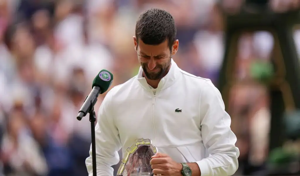 “I thought I would have trouble with you only on clay and hard court, but not on grass but now it’s a different story from this year obviously,” conceded Djokovic in a post-match speech that was temporarily interrupted when he locked eyes with his son Stefan and broke down in tears in front of the Centre Court crowd.